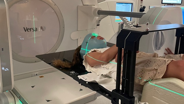 En vecka efter operationen påbörjade Ebba en 6 veckors lång strålbehandling. Hon blev väldigt dålig redan 2 veckor in på behandlingen. Utöver att hennes kropp och ansikte hade svällt upp av kortisonet så blev hon även förlamad på vänstra sidan av ansiktet och balansen försämrades drastiskt. Förlamningen påverkade hennes syn så mycket så hon behövde specialglasögon för att motverka dubbelseendet som blev värre och värre. Det tog bara någon månad innan Ebba även blev förlamad i högra sidan av kroppen och inte längre kunde stå eller gå själv. Hon lärde sig använda vänster hand ett litet tag men orkade inte använda den i slutet heller. Vårt hem fylldes av olika maskiner, sängar och rullstolar som skulle hjälpa henne och oss i den nya värld vi plötsligt befann oss i. Talet blev sämre och i slutet kunde vi nästan inte höra vad hon sa längre. Hon bara försvann, tynade bort. Från en väldigt glad och pigg tjej som älskade skidåkning, simning, gymnastik, skola och att leka med vänner till en tjej som knappt fanns. På 3 månader.