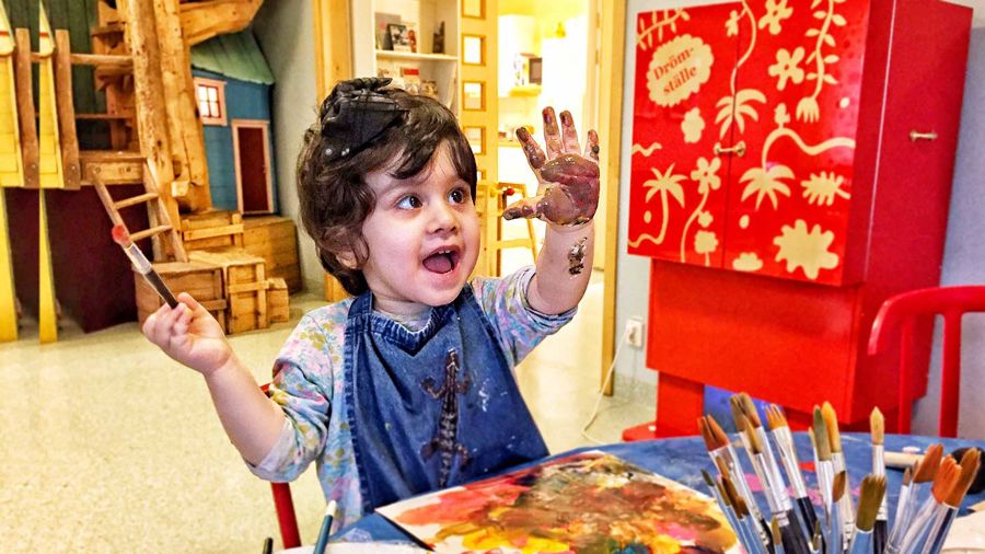 Målarverkstan innebär en kreativ stund för det sjuka barnet, och samtidigt en möjlighet att få kontakt sin friska sida.